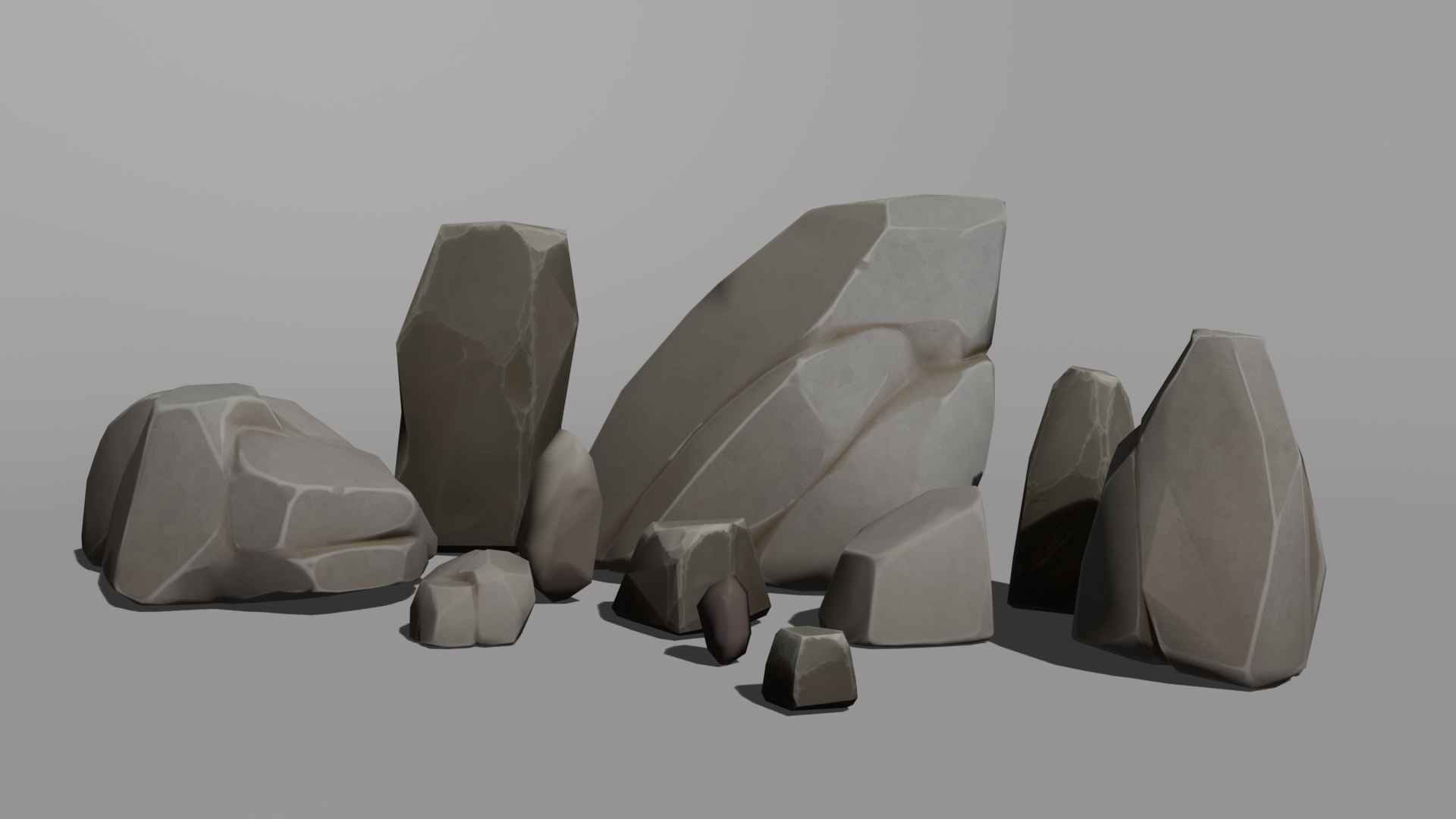 11块风格化岩石,采用清新的低多边形风格设计
